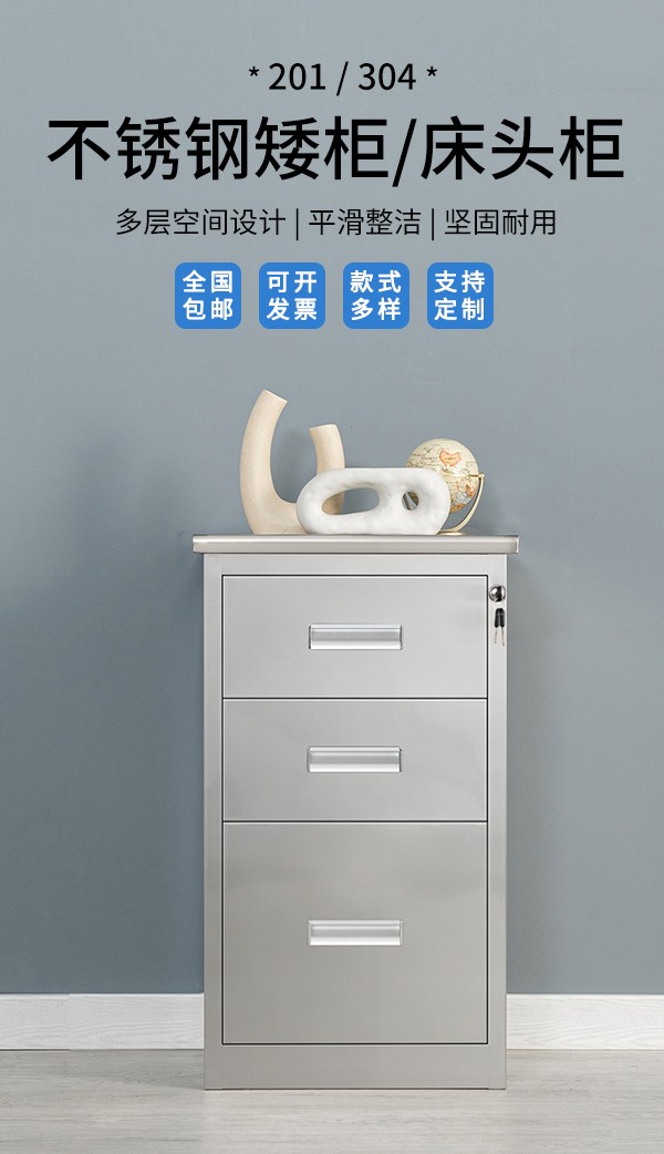 不锈钢矮柜三斗
