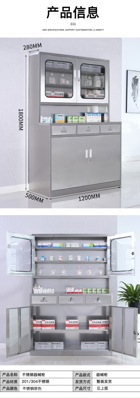 不锈钢西药柜1200宽