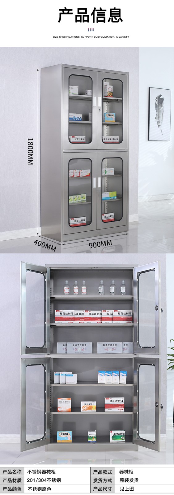 不锈钢西药柜上下器柜