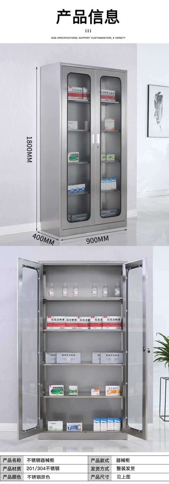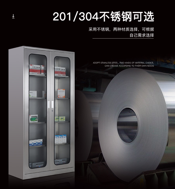 不锈钢西药柜通玻